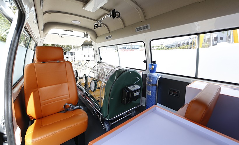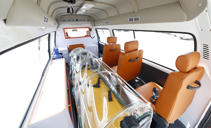 配備負壓隔離艙,過濾性能優(yōu)良,配合專用的自動上車擔架,有多檔變位,便于靈活、方便、無感染地轉(zhuǎn)運病人。