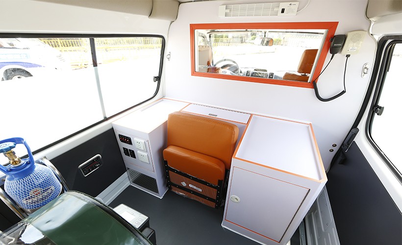 醫(yī)療艙頂部安裝有排氣扇,有效地將負壓隔離艙過濾后的氣體排出車外,保證艙內(nèi)空氣清潔。