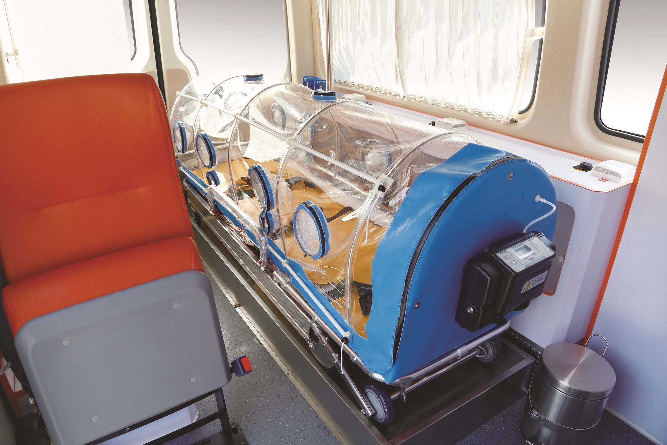 5、可配備負(fù)壓隔離艙,過(guò)濾性能優(yōu)良,配合專用的自動(dòng)上車擔(dān)架,有多檔變位,便于靈活、方便、無(wú)感染地轉(zhuǎn)運(yùn)病人。