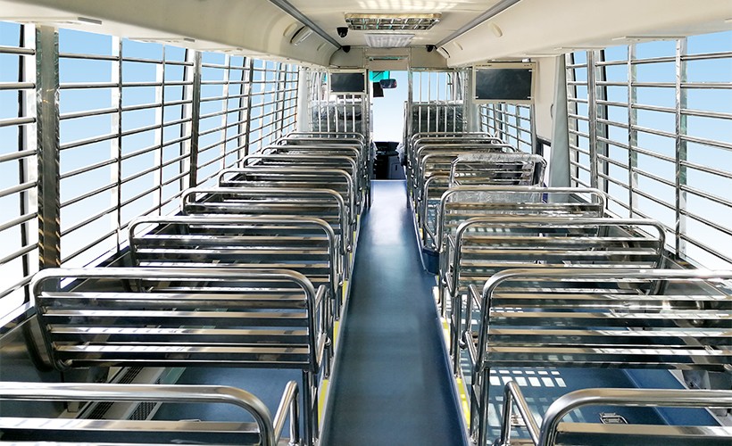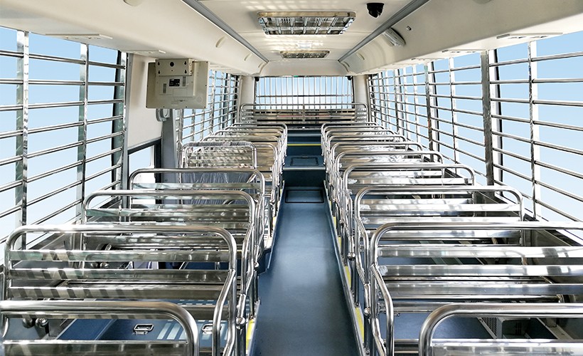 錦程囚車以人情化押運(yùn)囚犯為核心,并融入現(xiàn)代化通訊技術(shù)。整車集安全警示系統(tǒng)、供電系統(tǒng)、現(xiàn)場實(shí)時圖像監(jiān)控、排氣系統(tǒng)等功能于一體的多功能警務(wù)用車。整車科技含量高,工藝精細(xì),是刑事警察部門科技強(qiáng)警的必備裝備。