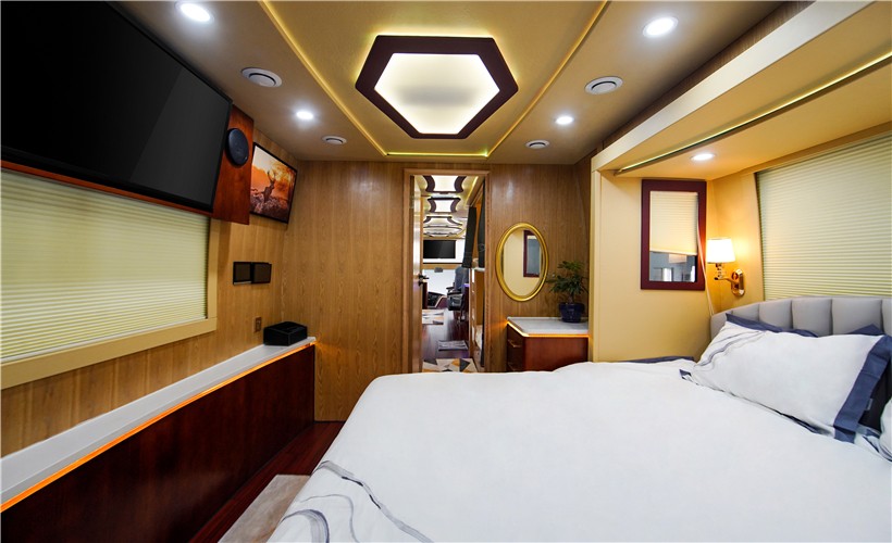 后部擴(kuò)展艙帶來超大空間,配置豪華雙人床,豪華單人上下床,讓您安心睡眠,如在家一般舒適。