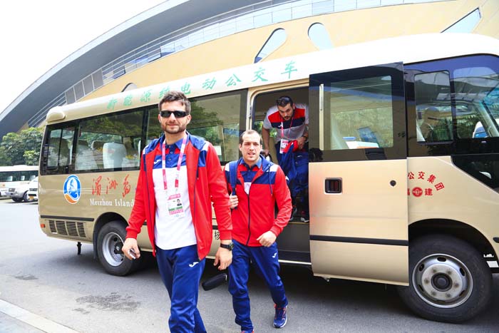 給運(yùn)動(dòng)員、裁判、官員等往返駐地酒店與賽事場(chǎng)館之間提供便利的交通運(yùn)輸保障,是這兩次賽事后勤保障的重要內(nèi)容。為秉持環(huán)保節(jié)能,綠色辦賽的宗旨,賽事上通勤車全部為純電動(dòng),“噪音小、穩(wěn)定舒適,符合綠色環(huán)保節(jié)能的賽事要求。”賽事組委會(huì)交通運(yùn)輸部聯(lián)絡(luò)員戴鴻琰說。擔(dān)當(dāng)這兩次賽事通勤重任主角的是金旅考斯特純電動(dòng)豪華中巴。黃師傅有著二十多年的駕齡,但卻是第一次駕駛純電動(dòng),黃師傅滿意地稱贊道“第一次開純電動(dòng)挺激動(dòng)的,沒想到(純電動(dòng))運(yùn)行如此平穩(wěn),啟動(dòng)和加速都很快,而且沒有味道和噪音,乘客坐起來也十分舒適。”金旅考斯特車型從它誕生之日起,一直是國內(nèi)同級(jí)別車型的銷量冠軍,更憑借卓越的品質(zhì),從98年至今連續(xù)19年服務(wù)人大“兩會(huì)”,被喻為“國賓車隊(duì)的專用車”,并且長期服務(wù)國家及地方重要會(huì)議政務(wù)及活動(dòng)的接待,廣泛應(yīng)用于商務(wù)、公務(wù)接待、城市通勤、中短途旅游用車以及城市社區(qū)、接駁線公交等市場(chǎng)。面對(duì)持續(xù)升溫的新能源市場(chǎng),“觸電升級(jí)”的金旅純電動(dòng)考斯特依然延續(xù)著熱銷的局面。
