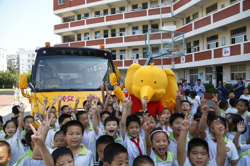 金旅小金象帶著校車和同學(xué)們進(jìn)行親密接觸