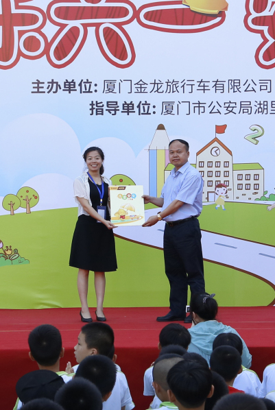 活動(dòng)的最后是捐贈(zèng)環(huán)節(jié),金旅客車國(guó)內(nèi)銷售總監(jiān)賴志藝上臺(tái),將安全手冊(cè)贈(zèng)送給華悅學(xué)校?!缎〗鹣髢和踩謨?cè)》是廈門金旅特別制作的,通過漫畫的形式,讓小朋友們?cè)谏鷦?dòng)有趣的閱讀中,學(xué)習(xí)在生活細(xì)節(jié)中增強(qiáng)安全意識(shí), 加強(qiáng)面對(duì)各種危險(xiǎn)時(shí)的應(yīng)急能力。