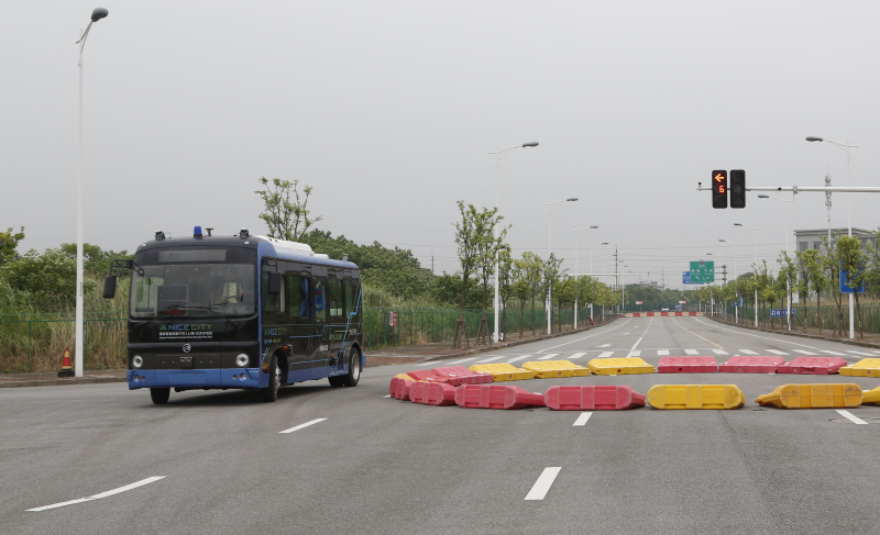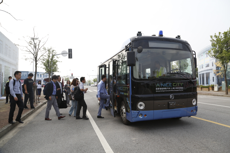 首次亮相的金旅無人駕駛微循環(huán)巴士順利完成2公里場景體驗測試