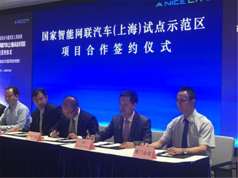 金旅(右一)于今年與國家智能網聯(lián)汽車(上海)試點示范區(qū)簽訂項目合作