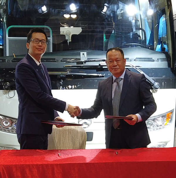 在展會上,金旅公司與新康恒集團(tuán)有限公司簽署了戰(zhàn)略合作協(xié)議,新康恒集團(tuán)有限公司行政總裁謝家銘、金旅公司海外銷售公司總經(jīng)理安敏等領(lǐng)導(dǎo)和嘉賓出席了該簽約儀式。新康恒集團(tuán)有限公司是澳門最具實(shí)力及最具規(guī)模的汽車集團(tuán)之一,代理及服務(wù)眾多歐洲日本知名品牌,金旅公司是國內(nèi)客車制造的龍頭企業(yè),實(shí)力雄厚的兩家企業(yè)強(qiáng)強(qiáng)聯(lián)手,未來澳門市場發(fā)展值得更多期待。金旅公司海外銷售公司總經(jīng)理安敏在簽約儀式上表示:“新康恒集團(tuán)有限公司創(chuàng)立超過20年,具備完善的管理機(jī)制,覆蓋全澳門的銷售網(wǎng)絡(luò),優(yōu)秀的售后服務(wù)團(tuán)隊,與該集團(tuán)結(jié)為戰(zhàn)略合作伙伴,相信我們很快能將金旅的優(yōu)質(zhì)產(chǎn)品全面帶入澳門市場,更好地為澳門市民,澳門游客服務(wù),為澳門的綠色公共出行做出貢獻(xiàn)。”