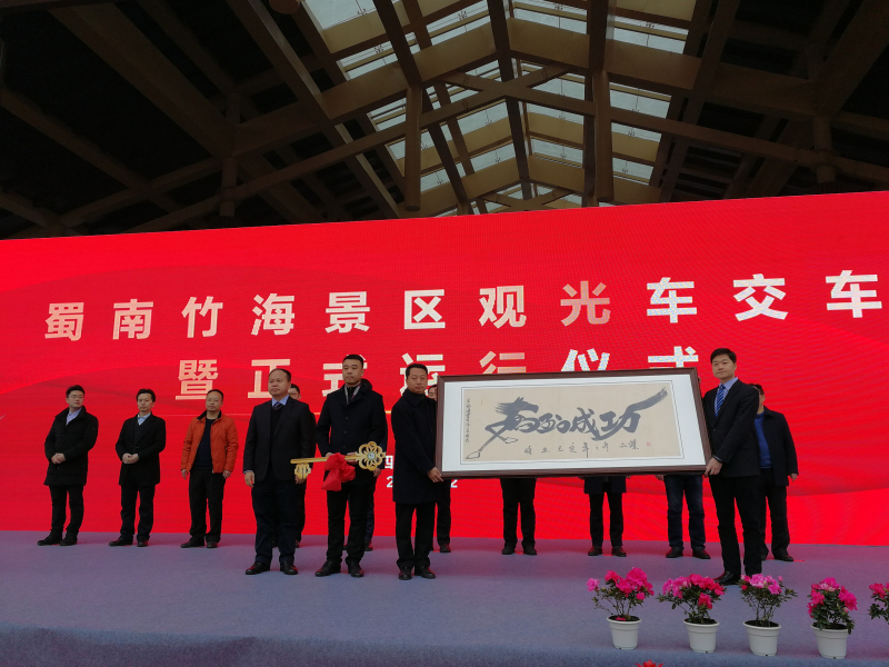 2019年12月31日,蜀南竹海景區(qū)觀光車交車暨正式運行儀式在蜀南竹海游客接待大廳門口舉行。