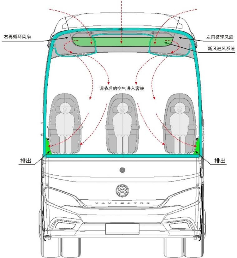 由于客車空間相對封閉且狹小,如何保證客艙內(nèi)空氣的清潔安全就成了阻斷病毒傳播的重中之重。金旅客車利用車載空氣殺菌消毒系統(tǒng)和新風換氣裝置,通過多級空氣過濾和多種除菌消毒措施,確保車內(nèi)空氣清新安全,使乘客和駕駛員實現(xiàn)氧吧級的健康呼吸。