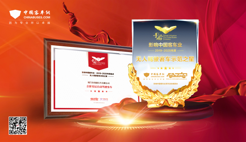在線上活動中,影響中國客車業(yè)調查評選活動結果揭曉,金旅領航者車型斬獲2019年度“高端商務客車之星”、金旅星辰更是奪得2019年度“微公交客車之星”、2019年度“無人駕駛客車示范之星”兩項大獎。