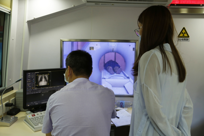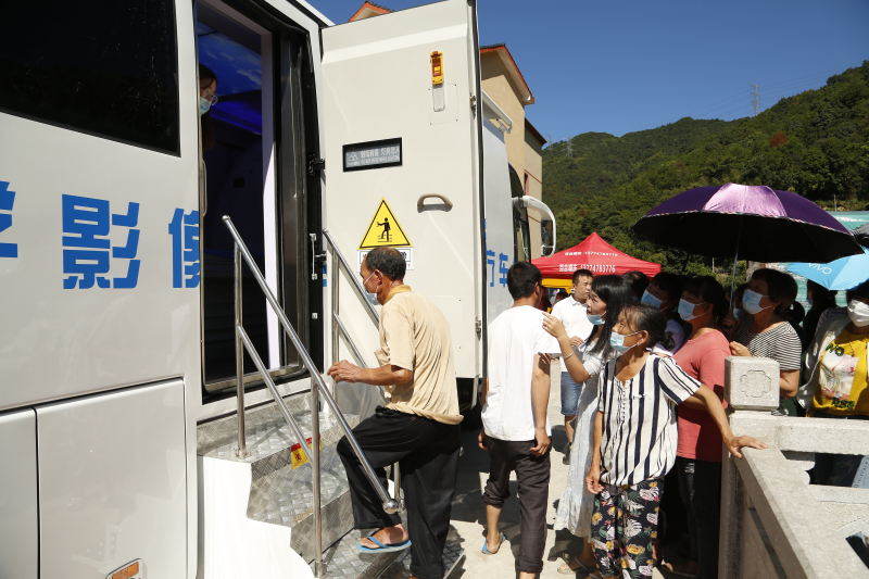 而義診活動現(xiàn)場,最讓老鄉(xiāng)們驚喜的,是CT體檢車的到來。作為本次活動的支持單位,廈門金龍旅行車有限公司和上海電氣康達(dá)醫(yī)療器械集團(tuán)股份有限公司,將合作打造的CT醫(yī)療車開到了活動現(xiàn)場,把CT檢查搬到坑門里村民的家門口,并通過遠(yuǎn)程會診系統(tǒng)和移動醫(yī)療數(shù)字篩查技術(shù),對村民們進(jìn)行肺癌篩查。