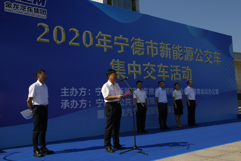 9月1日,2020年寧德市新能源公交車(chē)集中交車(chē)活動(dòng)在寧德市會(huì)展中心舉行?;顒?dòng)由寧德市新能源汽車(chē)推廣應(yīng)用和產(chǎn)業(yè)發(fā)展聯(lián)席會(huì)議辦公室主任、工信局局長(zhǎng)徐光忠主持,寧德市副市長(zhǎng)楊方,寧德市政府副秘書(shū)長(zhǎng)周正明,寧德市交通投資集團(tuán)有限公司黨委書(shū)記、董事長(zhǎng)陳合招,福建省汽車(chē)工業(yè)集團(tuán)黨組成員、副總裁陳鋒,廈門(mén)金龍汽車(chē)集團(tuán)黨委副書(shū)記、副總裁吳文彬,寧德公交公司董事長(zhǎng)鄭長(zhǎng)鴻等出席活動(dòng)并見(jiàn)證交車(chē)。