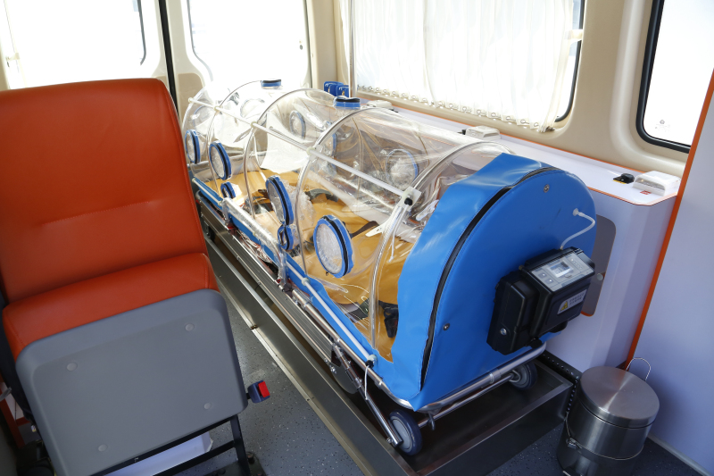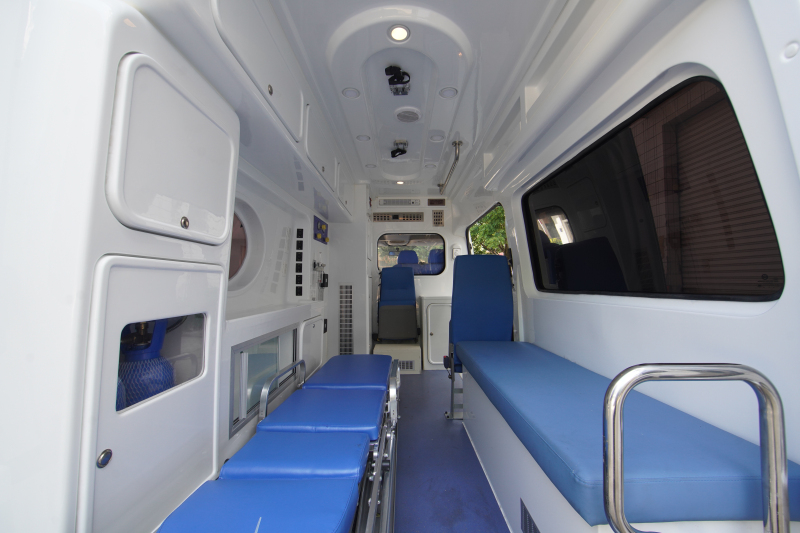 金旅領(lǐng)特負(fù)壓救護(hù)車首先具備普通救護(hù)車的基本功能。醫(yī)療艙內(nèi)部尺寸為3250mm×1790mm×1900mm(長(zhǎng)/寬/高),配備救護(hù)擔(dān)架、氧氣瓶、排氣扇、消毒燈、對(duì)講機(jī)等急救設(shè)備??梢葬槍?duì)不同醫(yī)院和機(jī)構(gòu)的具體需求,車輛加裝例如除顫儀,呼吸機(jī),心電監(jiān)護(hù)等全套搶救設(shè)備,為救援開啟“加速度”,為患者的搶救爭(zhēng)分奪秒。