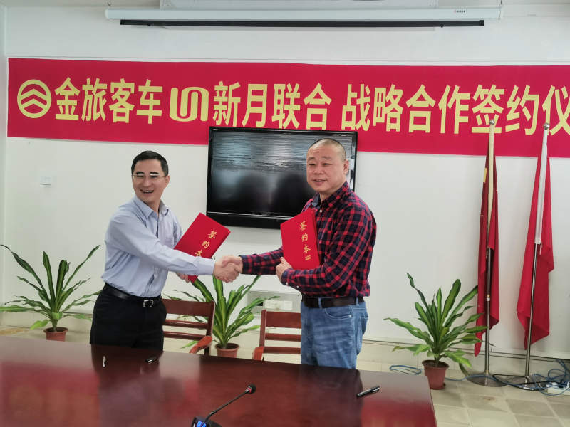 今年4月15日,北京新月劉長青董事長、劉長江總經(jīng)理一行蒞臨廈門金旅考察參觀,廈門金旅董事長、總經(jīng)理彭東慶、副總經(jīng)理賴志藝陪同接待。雙方本著平等互利、優(yōu)勢互補的原則,經(jīng)友好磋商,于4月16日簽訂戰(zhàn)略合作協(xié)議,結成長期、全面的戰(zhàn)略合作伙伴關系,在未來五年內客車采購首選金旅客車,其中2021年度第一批采購100輛領航者于6月交付,第二批160輛領航者于年底交付。