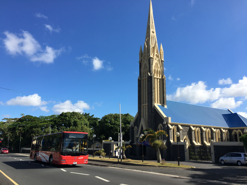 金旅12米公交駛過著名的毛里求斯羅斯希爾大教堂