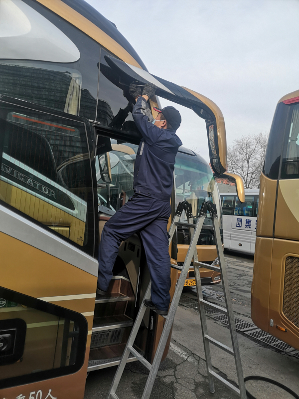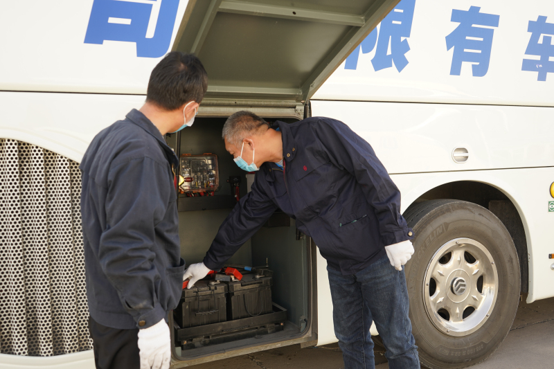 金旅服務(wù)團(tuán)隊對車輛展開細(xì)致檢查,備戰(zhàn)2022全國兩會