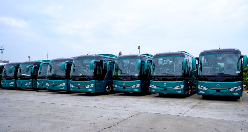 五月的廈門(mén),盛夏的驕陽(yáng)還未到來(lái),火紅的鳳凰花已在街頭巷尾次第盛開(kāi),為這座海濱城市增添一股明媚的熱情。在廈門(mén)金龍旅行車(chē)有限公司(下稱“金旅客車(chē)”)海滄生產(chǎn)基地,鳳凰花掩映下,新一批金旅純電動(dòng)旅游大巴正式啟程,奔赴廣州,交付廣州市都城汽車(chē)租賃有限公司。
