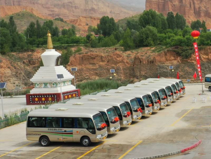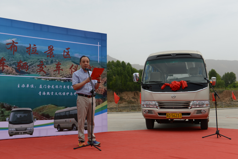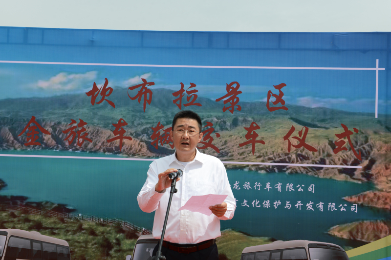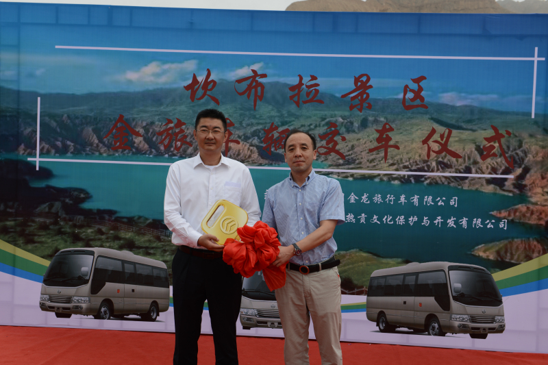 2022年7月8日,金旅客車與青??膊祭皡^(qū)的交車儀式在坎布拉景區(qū)舉行。當(dāng)天活動(dòng)現(xiàn)場(chǎng)彩旗飄飄,兩排整齊劃一的新車車頭掛著大紅花,分外喜慶。青海黃南州政府相關(guān)部門領(lǐng)導(dǎo)、景區(qū)管委會(huì)領(lǐng)導(dǎo)、景區(qū)車輛運(yùn)營(yíng)公司青海熱貢文化與開發(fā)有限公司董事長(zhǎng)馬亮和廈門金龍旅行車有限公司銷售公司副總經(jīng)理孫玉鋒等相關(guān)領(lǐng)導(dǎo)和嘉賓出席了該儀式。