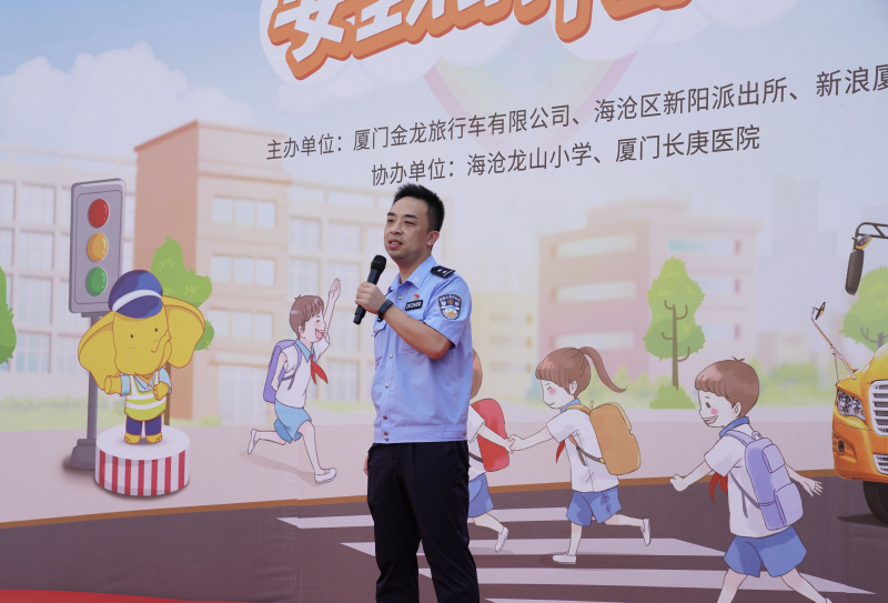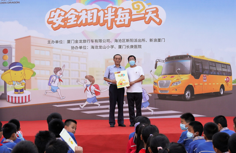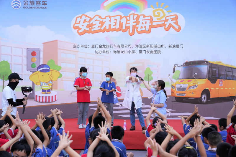 9月22日下午,廈門金龍旅行車有限公司聯(lián)合愛心單位海滄區(qū)新陽派出所、廈門長庚醫(yī)院、新浪廈門,將一年一度的“安全相伴每一天”兒童安全知識公益活動送進(jìn)廈門市海滄區(qū)龍山小學(xué)?;顒蝇F(xiàn)場通過生動有趣的安全知識體驗(yàn)、有獎(jiǎng)互動問答,讓同學(xué)們在九月開學(xué)季“安全第一課”中輕松愉快學(xué)習(xí)安全知識。