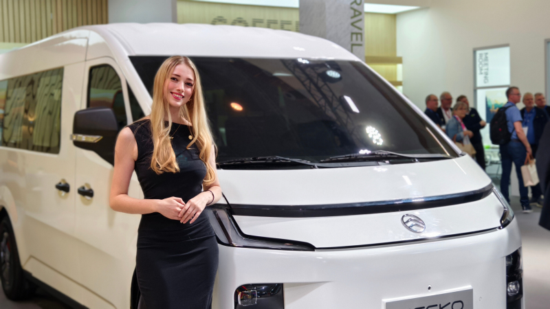 金旅客車的輕型車產(chǎn)品在海外一直有口皆碑,為滿足最新的市場(chǎng)需求,金旅推出了全新的新能源輕型商用車——GECKO。此次參展的GECKO展車,整車尺寸5400×1979×2185mm,采用2+2+2+3的座椅布局,配備寧德時(shí)代83.67度電池,純電續(xù)航里程在WLTP工況下可達(dá)460km,且具備L2+級(jí)智能輔助駕駛功能,集成8顆超聲波雷達(dá)、4顆環(huán)視攝像頭、DMS駕駛員監(jiān)測(cè)等傳感器,讓駕駛更輕松更安全。