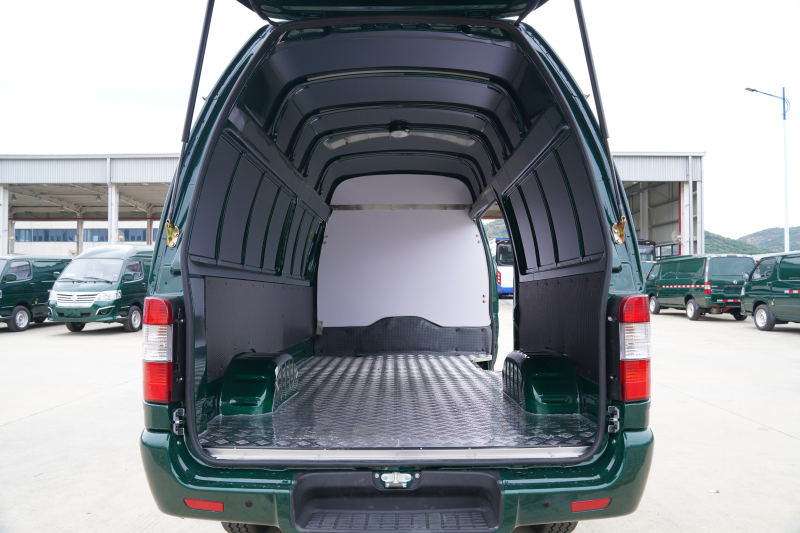作為精準匹配郵政快遞運營需求的核心車型,龍運 GLE850是金旅專為城配物流場景打造的明星產(chǎn)品。該車型體型小巧靈動,通過性尤為突出,高頂版車身高 2260mm、寬 1700mm,可在市區(qū)狹窄街巷靈活穿梭;同時兼具“外小內(nèi)大” 的空間優(yōu)勢,高頂版貨廂容積達8.2m3,內(nèi)部長3.2m、高 1.65m,人員可直立開展裝卸作業(yè),側(cè)移門、后掀背門及雙開門的多元設計,能完美適配商超多點配送等復雜城配場景。在載重與耐用性方面,車型配備5片鋼板彈簧后懸架及 195/70R15載重輪胎,貨廂采用 1.2mm 加厚鋼板材質(zhì),既能充分滿足郵政物流的實際載重需求,又能有效延長車輛使用壽命,降低長期運營損耗。