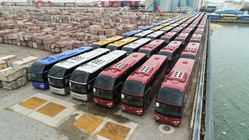 2018年6月在廈門碼頭即將發(fā)運往沙特的金旅客車