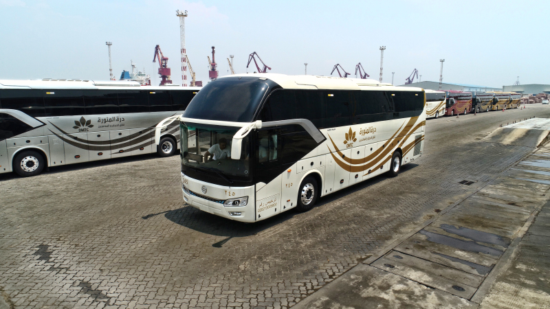 朝覲是伊斯蘭教的“五功”之一,是每位穆斯林信徒一生中至少要進行的一次活動。每年,來自全世界的朝覲者會齊聚麥加,他們將此視為一次非常重要的精神之旅。2017年,赴麥加參加朝覲的人數(shù)超過235萬人。面對這全球最大的年度聚會,數(shù)百萬人的交通運輸問題給沙特政府帶來了巨大的挑戰(zhàn)。近年來,沙特市場成為中國客車出口的最重要的市場,中國客車成為沙特客車市場毫無疑問的主力軍。2018年7月,金旅客車兩批共計270輛豪華大巴相繼抵達沙特,交付ELSERAG和DMTC兩家當?shù)剡\輸企業(yè),將服務于麥加朝覲人員的運輸,其中,6輛金旅領航者豪華大巴投入沙特后將成為沙特最高端配置的中國客車。