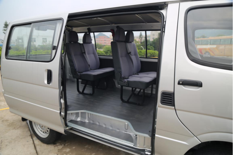 中間的推拉門也是海獅車的特色設(shè)計(jì)了,從這個(gè)角度看去后面安裝了四張座椅,座椅都是利用支架直接固定在車廂地板上,每個(gè)座位均配有三點(diǎn)式安全帶。二級(jí)踏板也是海獅系列車型的特色,而“新時(shí)代”也保留了這個(gè)特色,非常方便人員上下車。