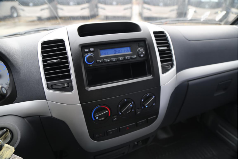 中控臺(tái)設(shè)有儲(chǔ)物格,可以放手機(jī)、票據(jù)等物品。收音機(jī)為標(biāo)配,高配車型可配置DVD播放機(jī)。下方為空調(diào)控制區(qū)域,功能簡(jiǎn)單實(shí)用。