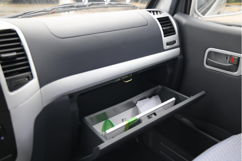 副駕上工作臺(tái)里面是保險(xiǎn)盒,下面則是儲(chǔ)物盒。