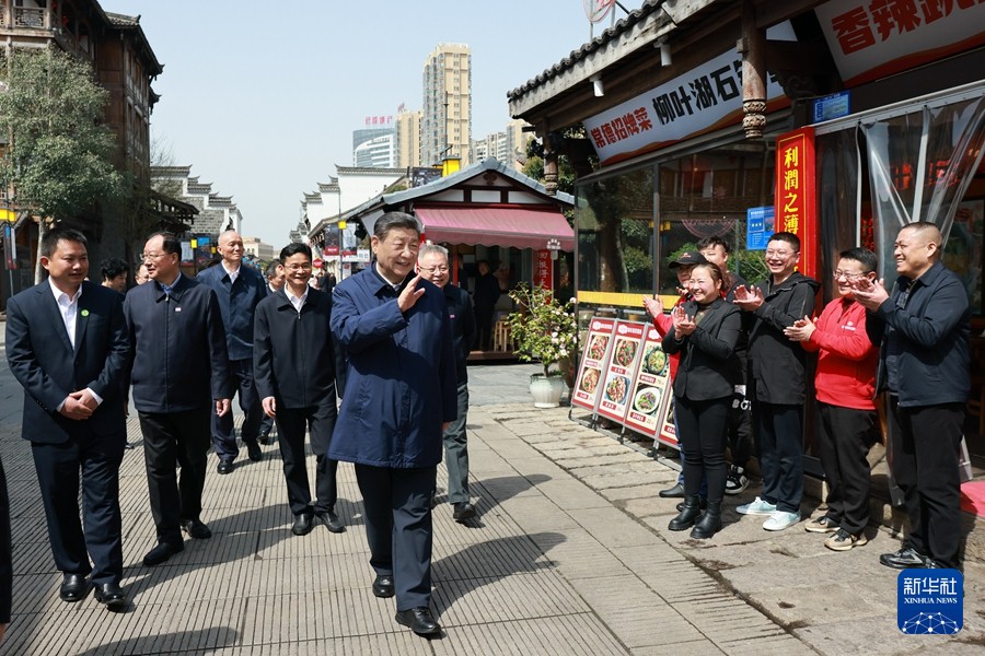 3月18日至21日,中共中央總書記、國家主席、中央軍委主席習近平在湖南考察。這是19日上午,習近平在常德河街考察。新華社記者